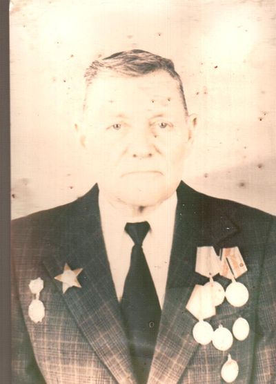 1917 года рождения. В 1940 был призван в Красную Армию. После полковой школы в звании сержанта его откомандировали в Белоцерковское пулеметно-стрелковое училище. В октябре 41-го окончил курсы усовершенствования командного состава. Участвовал в боях за Тихвин, 30 января был ранен. После окончания его направили в 960-й стрелковый полк 299-й стрелковой дивизии. В июле 1942 года дивизию направили под Сталинград. Здесь воевал до полного разгрома немцев, здесь же был тяжело контужен. После Сталинграда его дивизия вступила в бои на Курской дуге. Освобождали Харьков, Полтаву, Кременчук, Молдавию, Румынию, Югославию, Венгрию, Австрию. В Венгрии у озера Болотон был вторично контужен. После окончания войны работал в 304 лагере по департации советских граждан. Демобилизовался в апреле 1046 года. Много сил и энергии отдал делу воспитания молодежи и детей. В 1977 году ушел на пенсию. Инвалид 2-й группы ВОВ. Награжден орденами Красной Звезды, Отечественной войны 2-й степени, множеством медалей.
